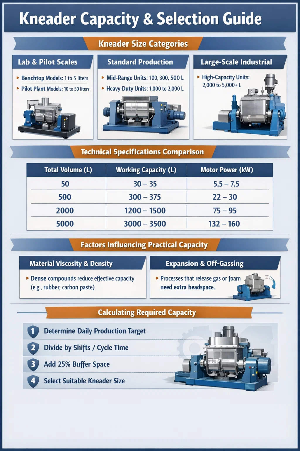 ความจุที่มีประสิทธิภาพของ เครื่องนวดยาง หรือเครื่องผสมสารเคมีไม่ได้ขึ้นอยู่กับขนาดถังเท่านั้น ปัจจัยทางกายภาพหลายประการจะกำหนดจำนวนวัสดุที่คุณสามารถดำเนินการได้จริงต่อชุดงาน: